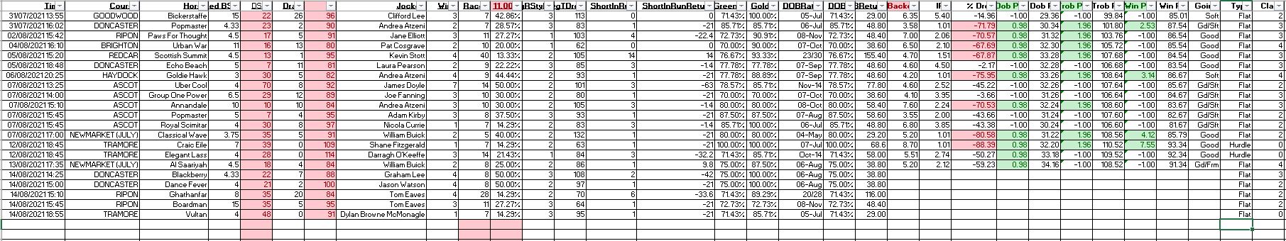 Bang on though. What I’m more interested in is finding a high strike rate laying system for the horses so we can replicate it. I think her system has something to do with DSLR(days since last run) but there is other stuff going on there.
