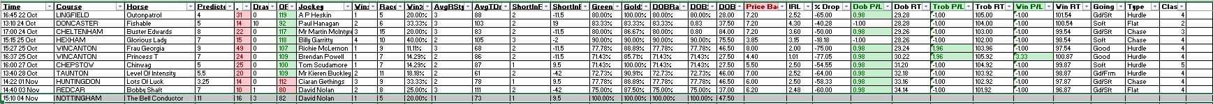 Fancy these as potential decent back to lays today, no strategy yet, just going to monitor for a while. Not got an odds range as monitoring but guessing below 3.0 BSP won't be very easy to DOB and anything odds on is totally void.